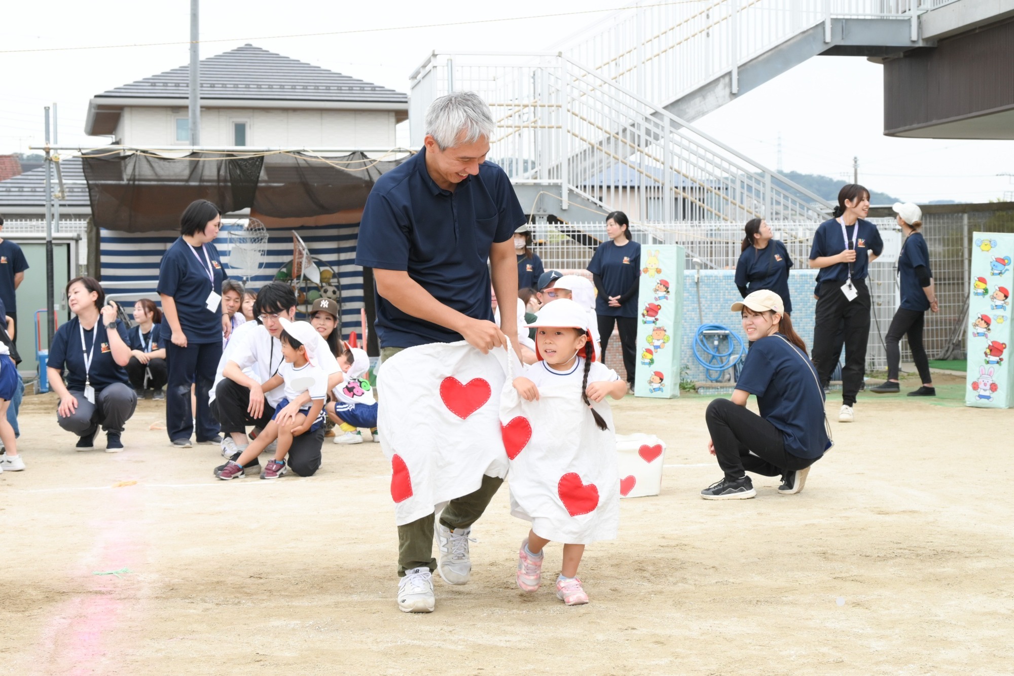3歳児クラスの子どもたちは遊戯をしたり、保護者の方とデカパンを履いて走ったり!