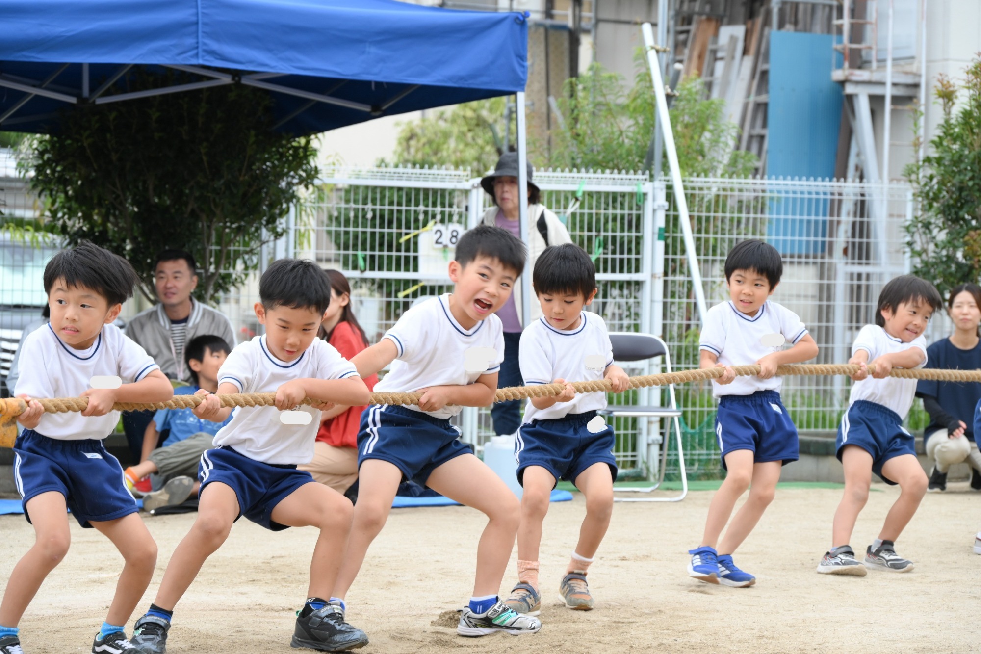 5歳児クラスの子どもたちはリレーや組体操、親子での綱引き対決!