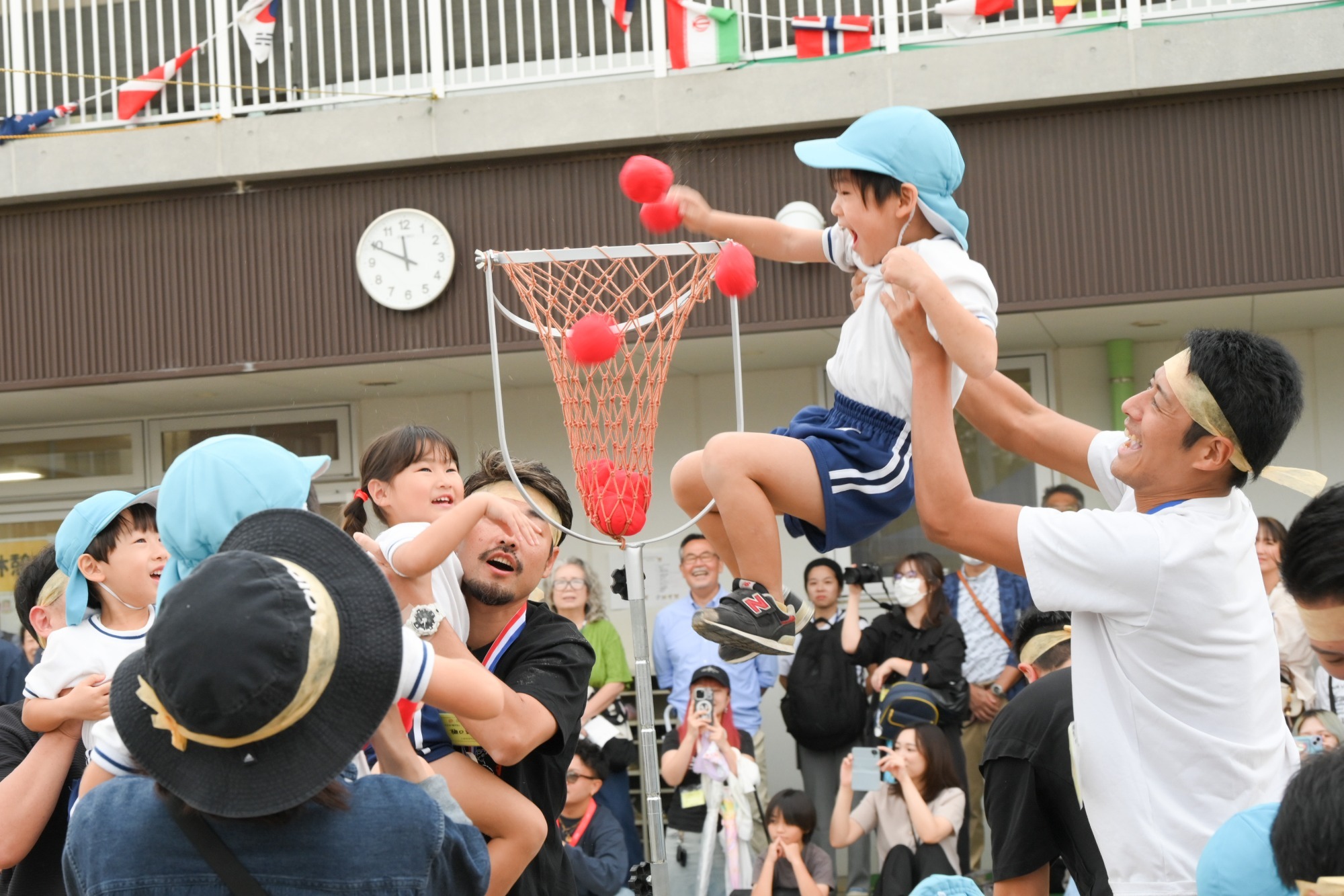 4歳児クラスの子どもたちはパラバルーンや親子での玉入れ!