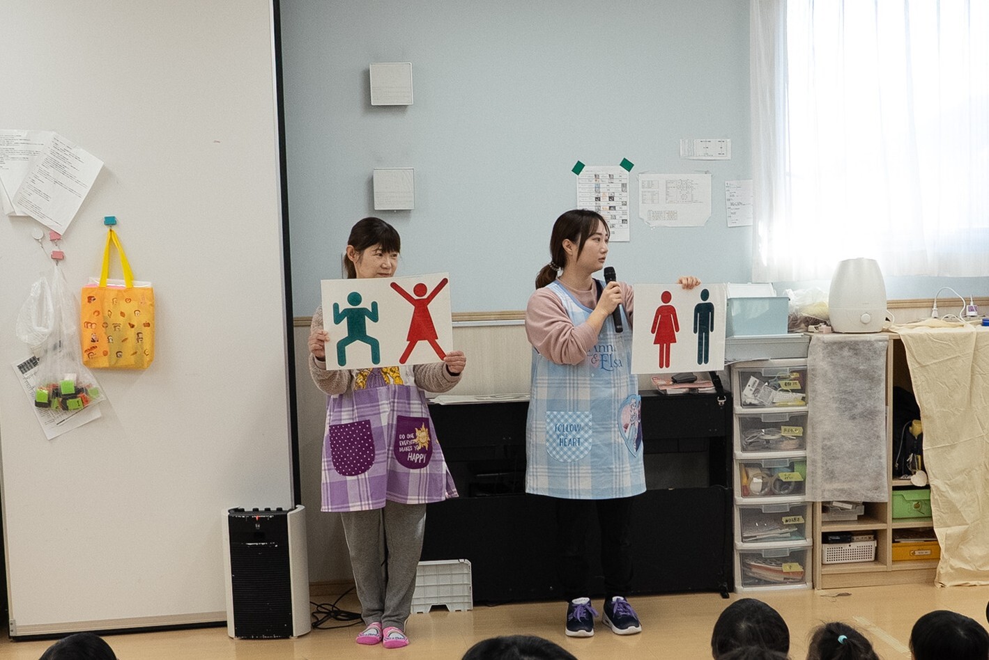 保育者の出し物はペープサートとお歌で、みんなで楽しいひと時を過ごしました。
